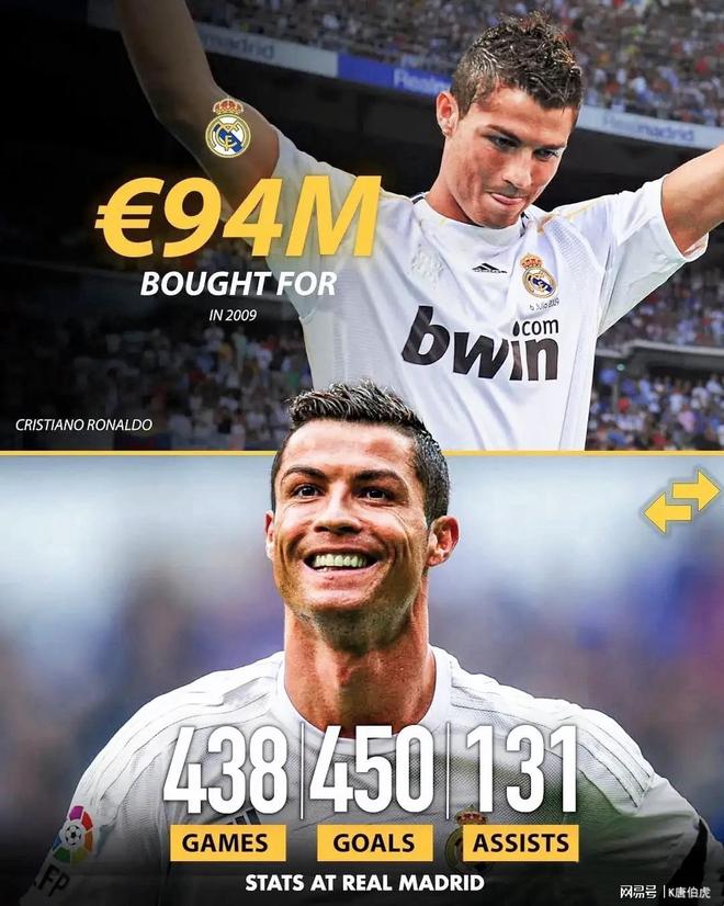 最值得也是最成功的引援必须是2009年的C罗,当年皇马掏出了9400万欧元的价格才将这名日后的世界最佳从曼联带走。2018年离开后,葡萄牙巨星将他的438场450球和131助攻深深地印在了俱乐部队史上,至今都无人超越。另外他还为皇马换回了1个亿的财务回报,这笔交易无疑是最成功的典范。