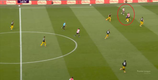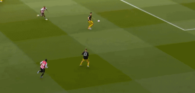 当然了,触发起点和谢什科没有关系,而是源自达洛特、库尼亚之间的配合没有成功,传球出现了线路上的瑕疵,结果直接被布伦特福德打回来,便触发了后场的问题: