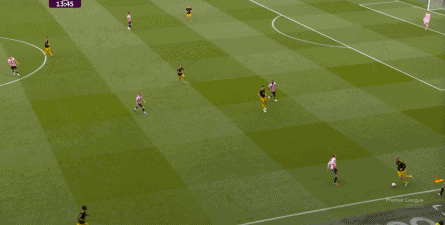 这一脚原本可以出给巴因迪尔,却被马奎尔踢出界外的球,可能是因为他觉得自己第一触,在身后对手逼上来之后,就没有了回给门将的角度: