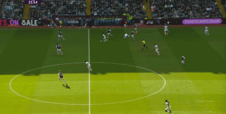 周日晚间,阿斯顿维拉也曾面对两次类似的单刀球,请看马丁内斯是否也是站在小禁区内进行防守的?